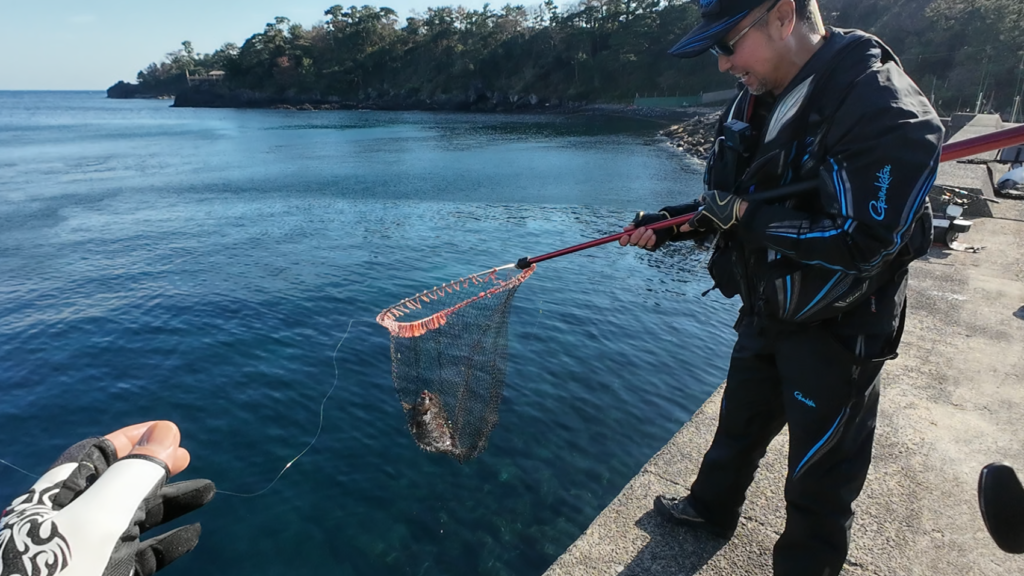 仕掛けを投げるのも困難な為、足元に見えている大きなサンノジを狙ってみます。