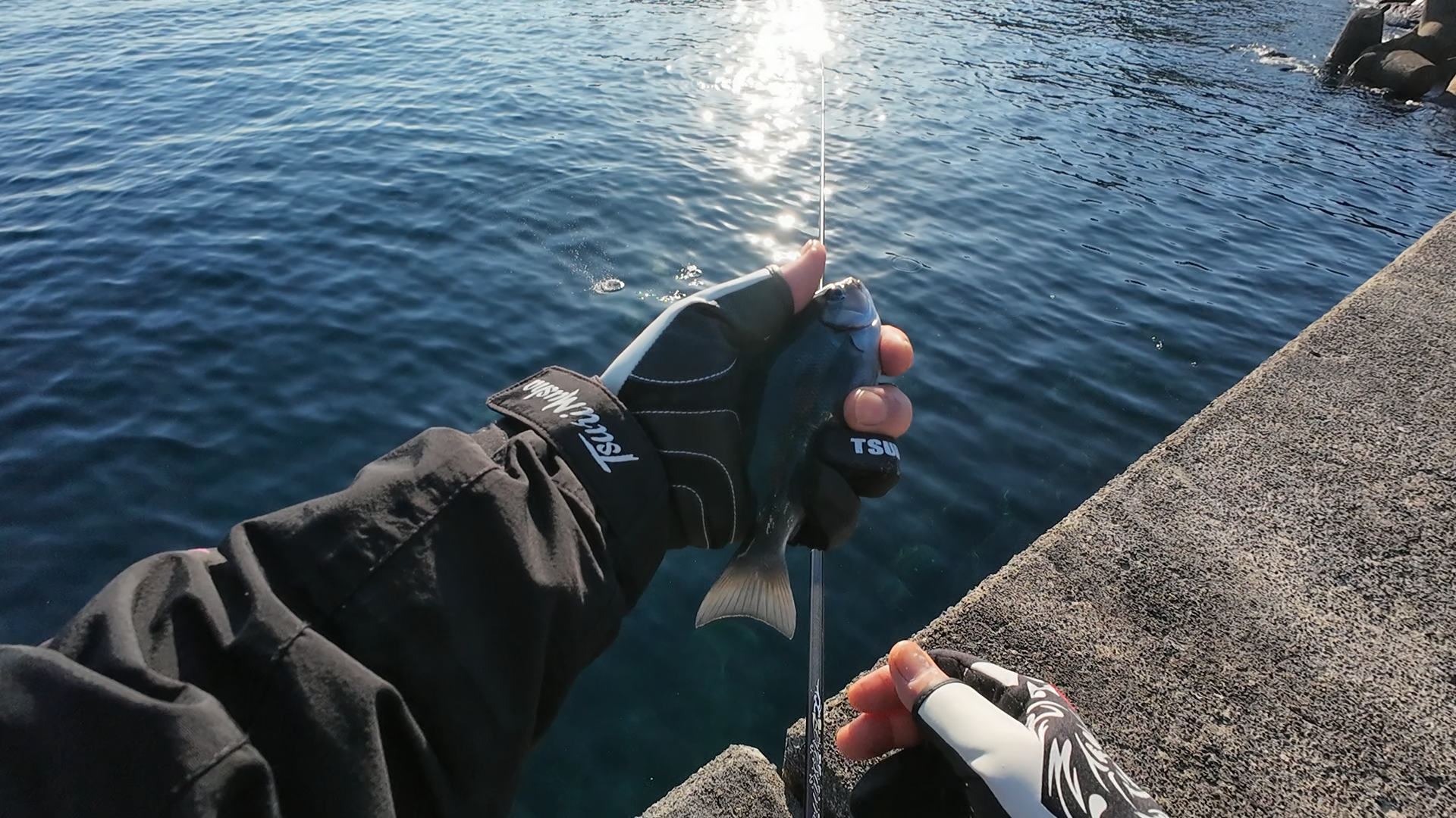 早々に釣れた木っ端尾長。